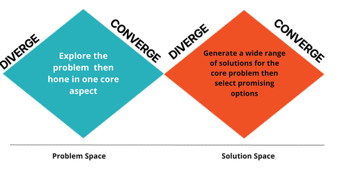 That question is then used to generate and test solution ideas in the next divergent phase.